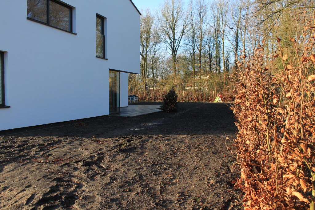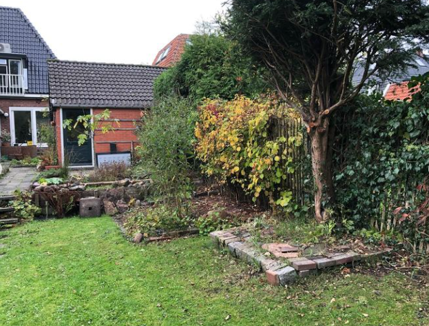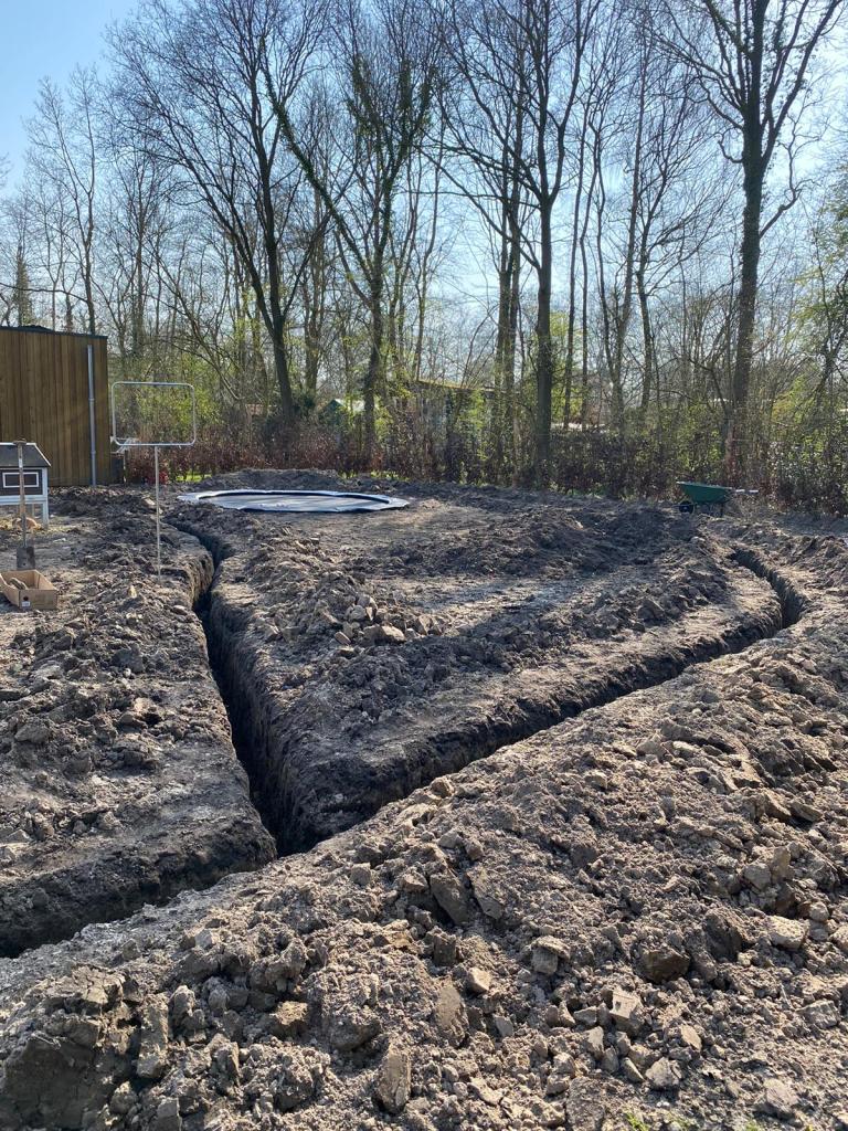 Coby: “Zodra we begonnen met snoeien en graven, ontdekten we de ene na de andere fundering in de tuin. Waarschijnlijk van eerdere schuurtjes en bijgebouwen. Blijkbaar namen ze vroeger niet de moeite om die helemaal weg te halen en werkten ze er gewoon overheen. We kwamen zelfs een oude beerput tegen. Het was heel veel werk om die er allemaal uit te halen. We dachten regelmatig: ‘Oh nee, niet weer!’ als we weer iets tegenkwamen. Containers vol zijn er uit de tuin gehaald voordat we echt van start konden.”
