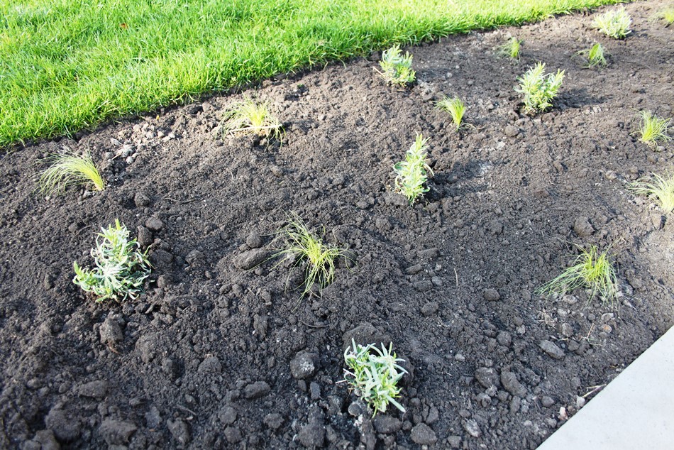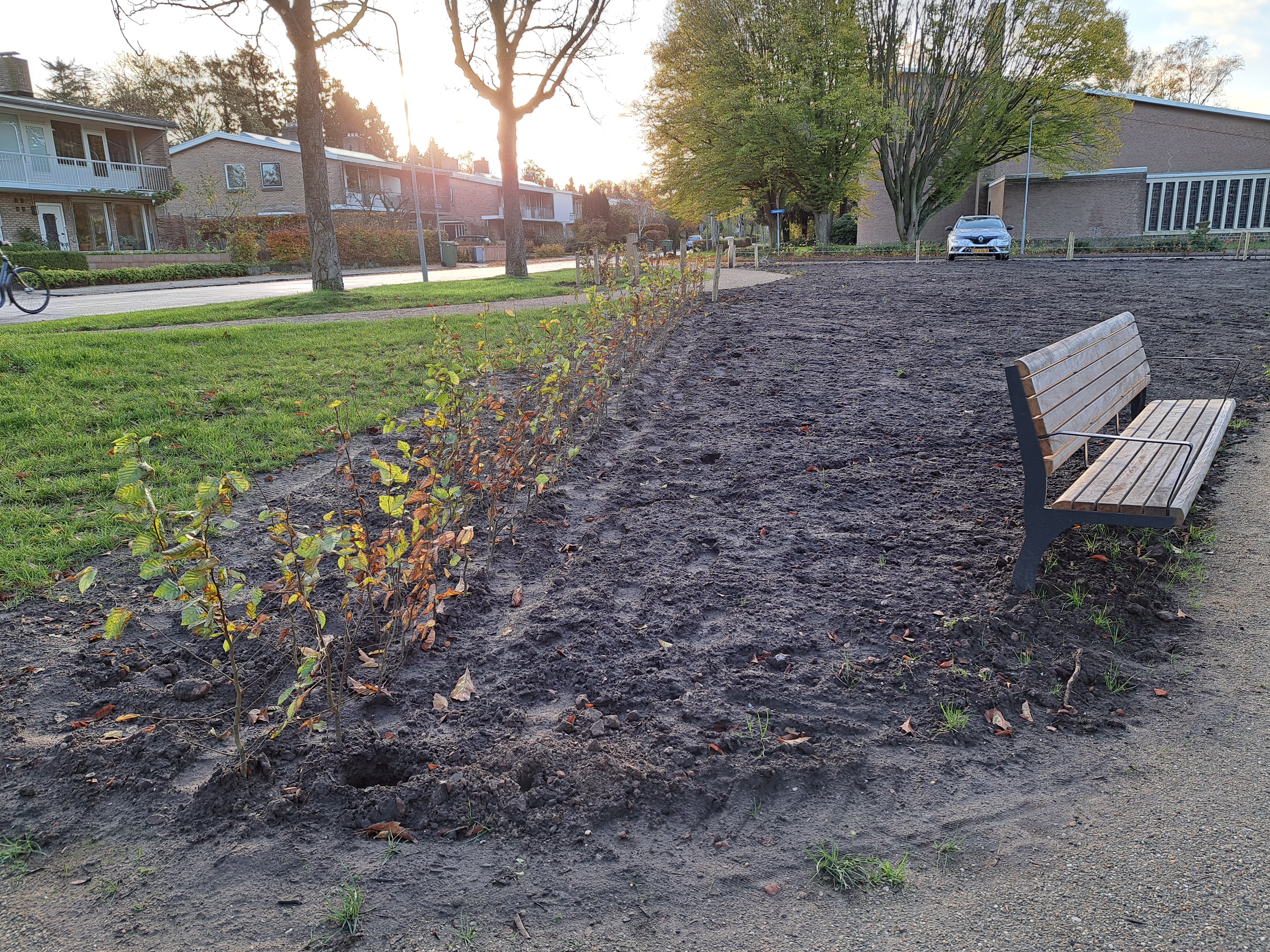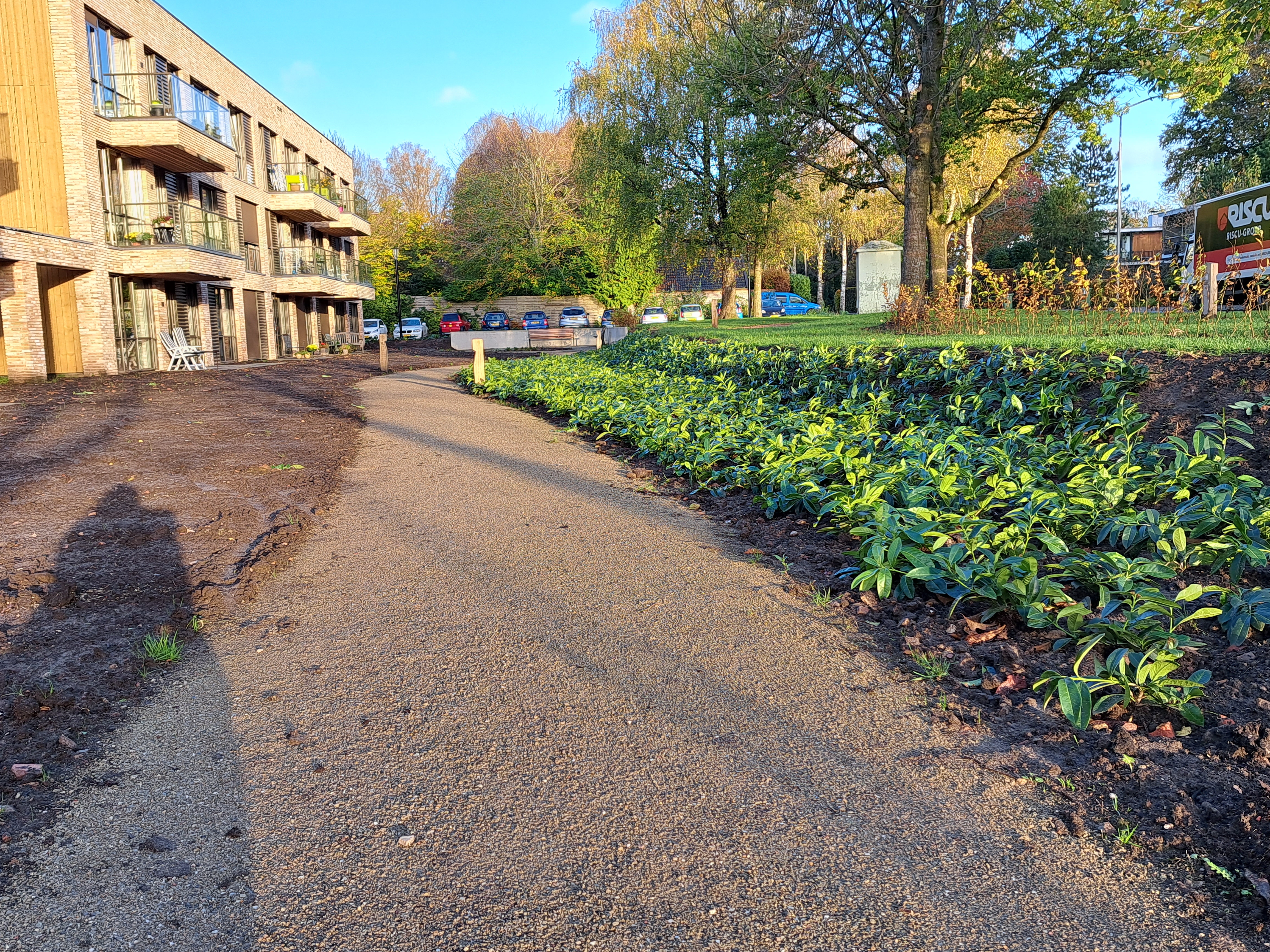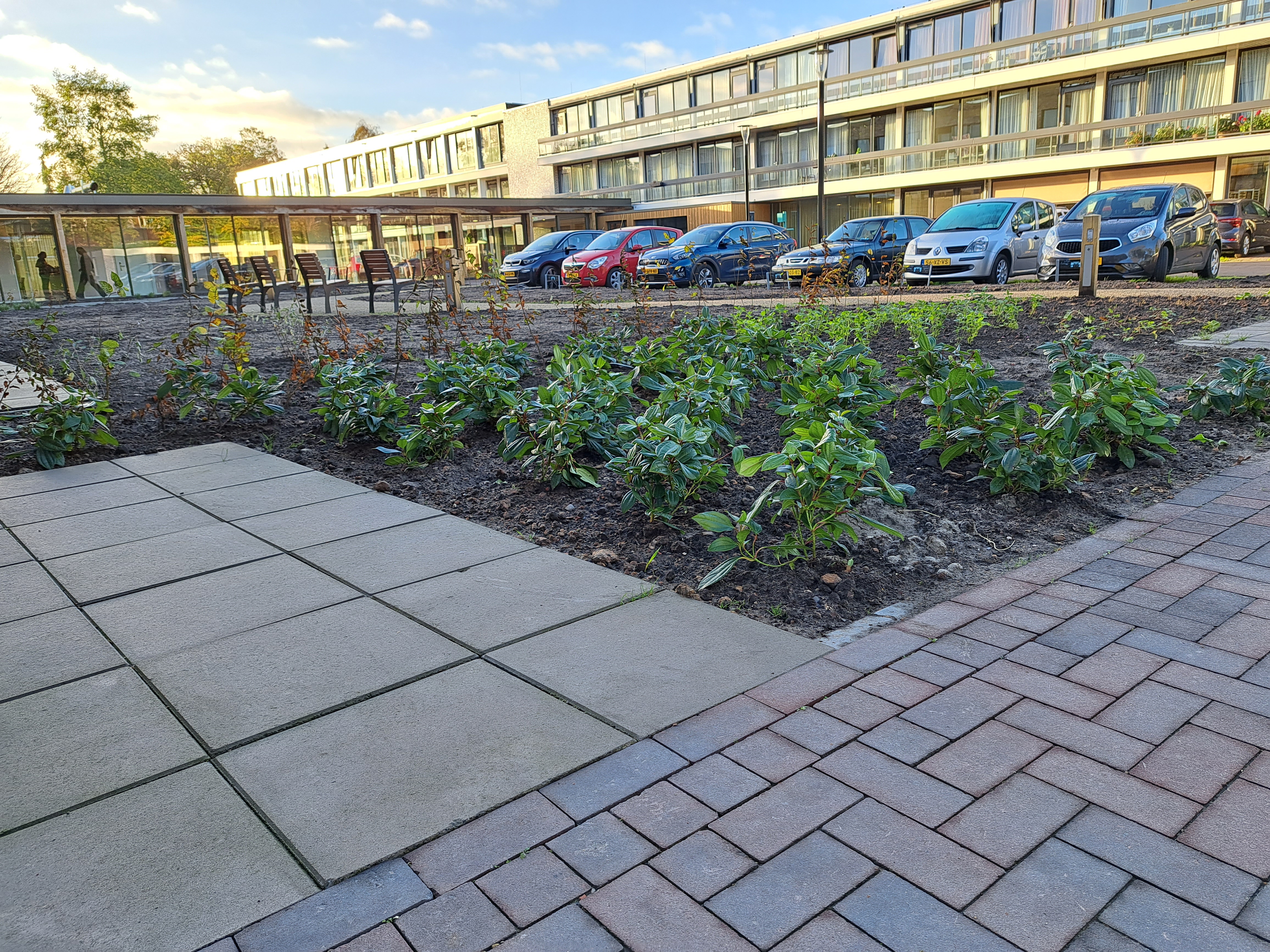Gelukkig kreeg de tuin in de loop van 2023 steeds meer de vorm die het stel voor ogen had. Ieder vrij uurtje werd benut. Samen met Anne-Marie en haar moeder – die een deel van de planten leverde – werden met paaltjes en draden de borders uitgemeten en de eerste planten uitgezet. Een stratenmaker legde de paden en terrassen aan. Na enig advies kozen ze er vervolgens voor om de tuin achter op te hogen. De oprit werd voorzien van grind waardoor het water beter weg kan zakken en er geen modder meer in huis wordt gelopen.