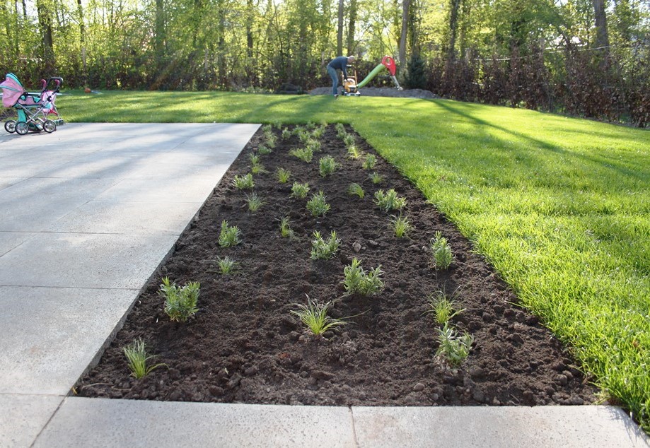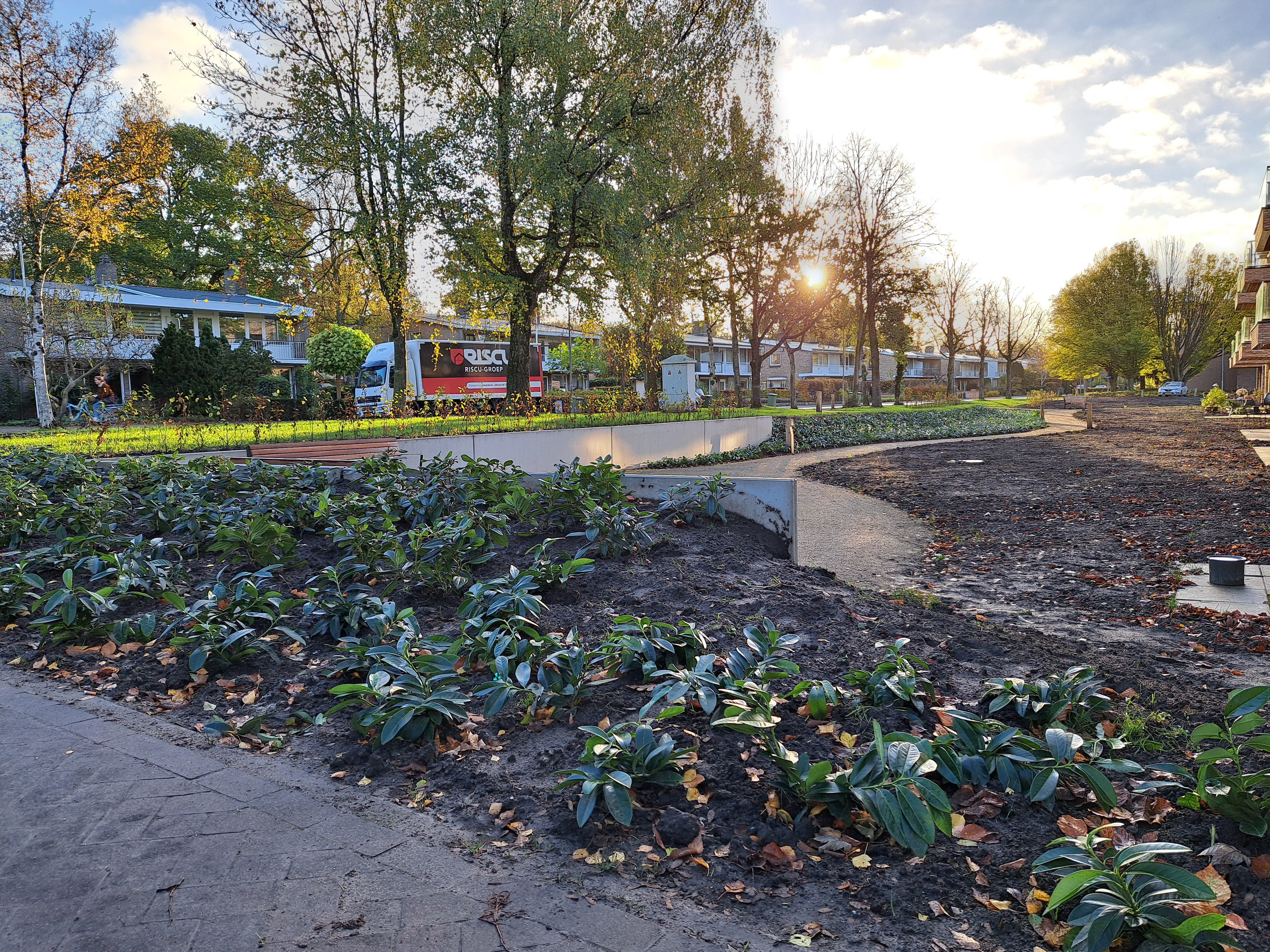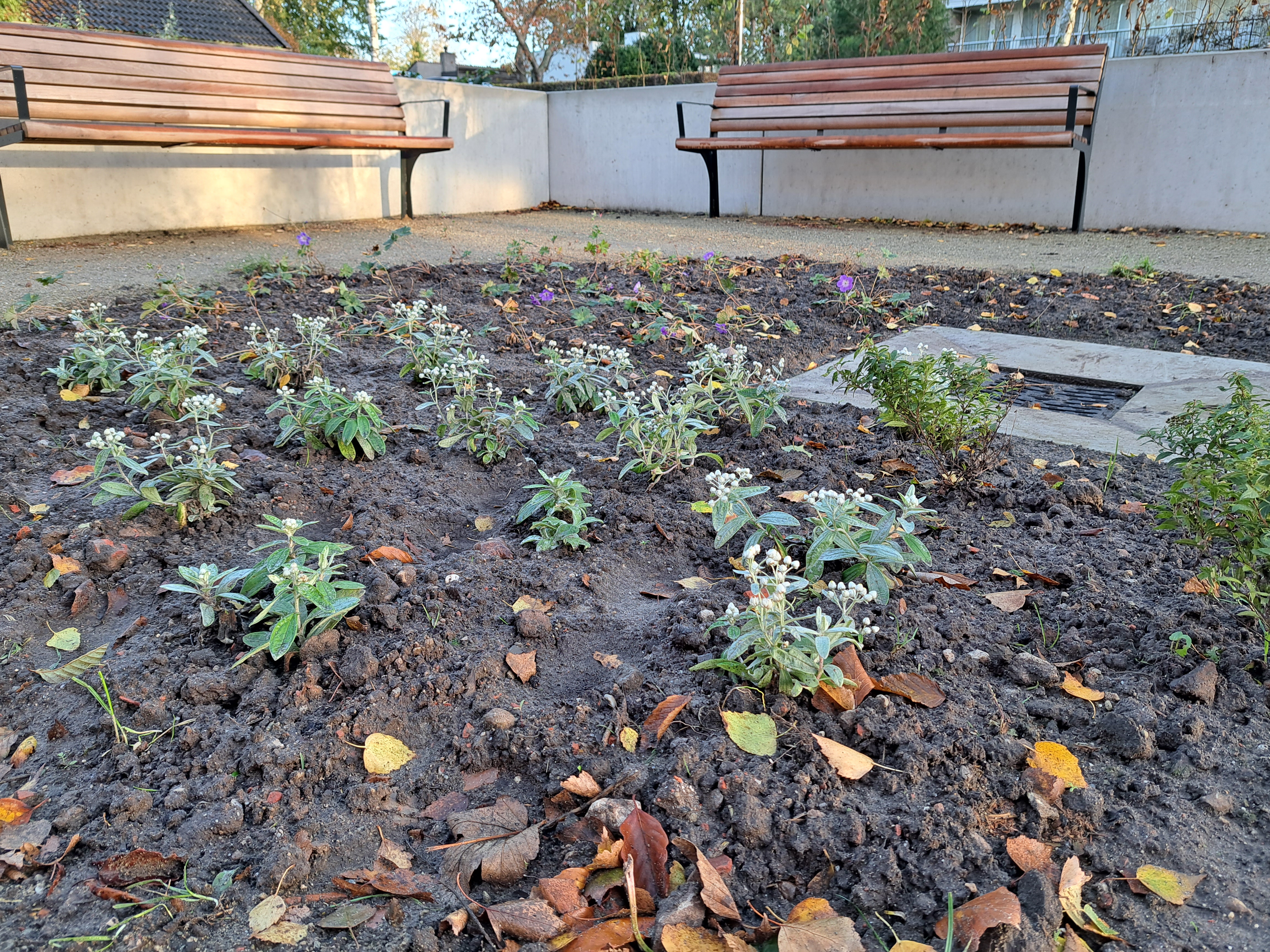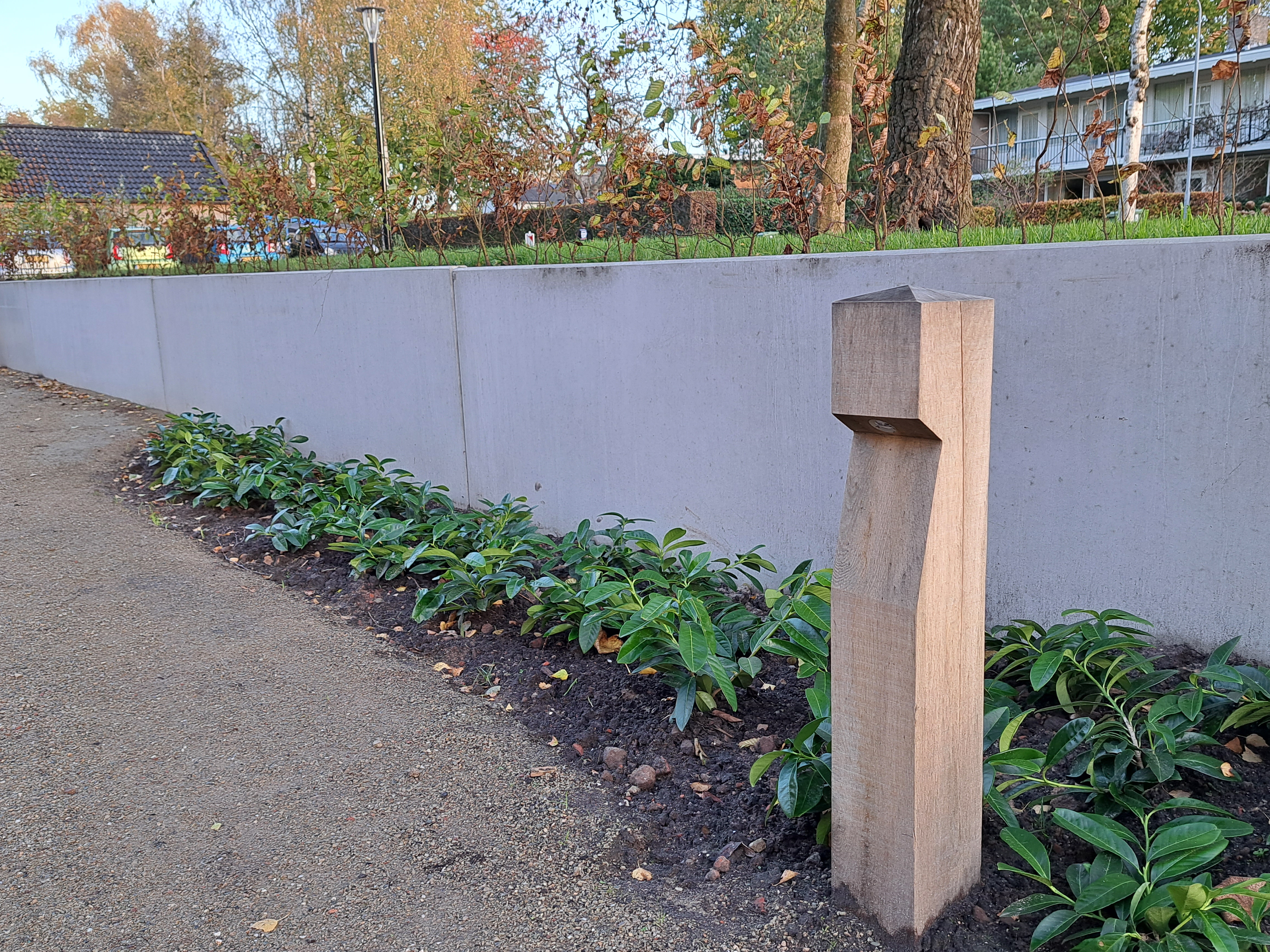 Gelukkig kreeg de tuin in de loop van 2023 steeds meer de vorm die het stel voor ogen had. Ieder vrij uurtje werd benut. Samen met Anne-Marie en haar moeder – die een deel van de planten leverde – werden met paaltjes en draden de borders uitgemeten en de eerste planten uitgezet. Een stratenmaker legde de paden en terrassen aan. Na enig advies kozen ze er vervolgens voor om de tuin achter op te hogen. De oprit werd voorzien van grind waardoor het water beter weg kan zakken en er geen modder meer in huis wordt gelopen.