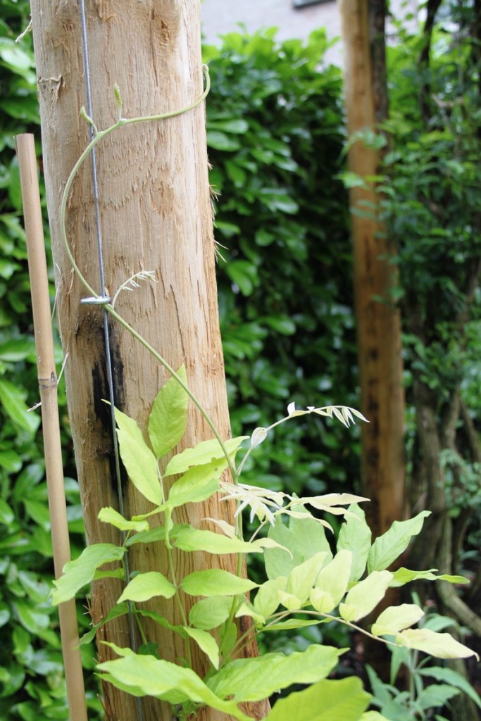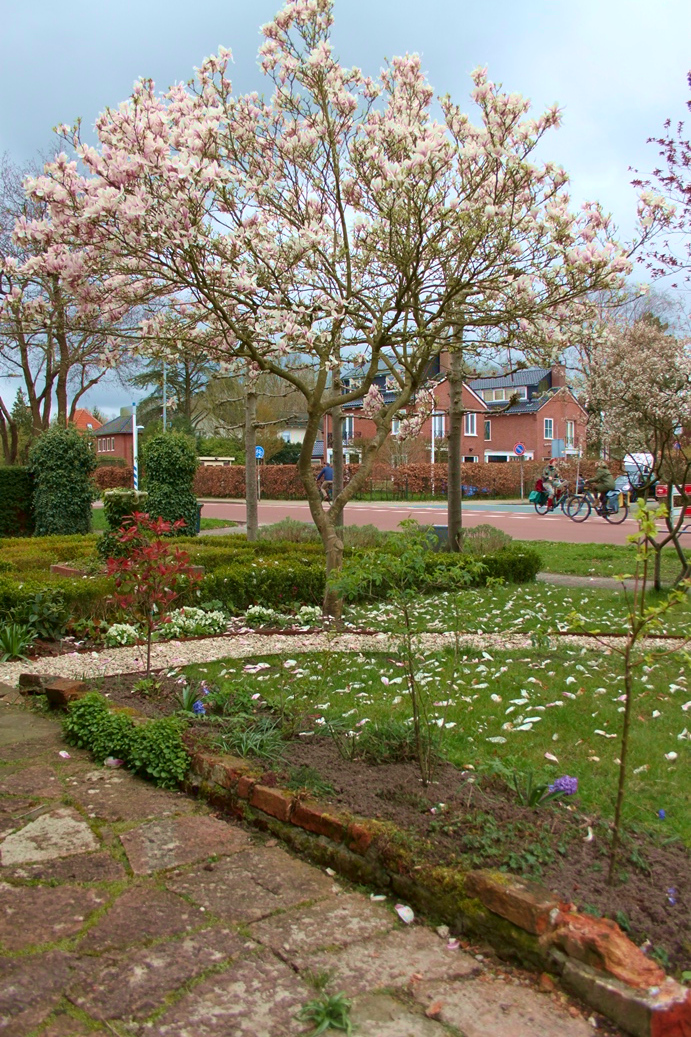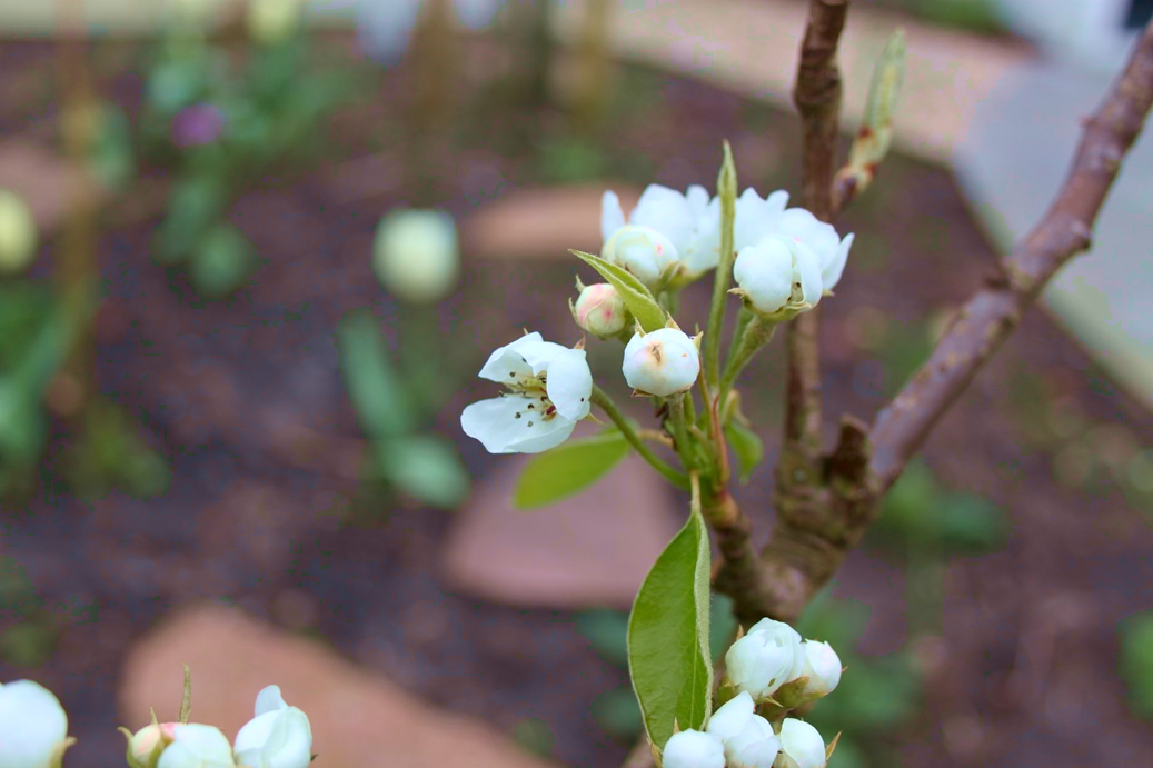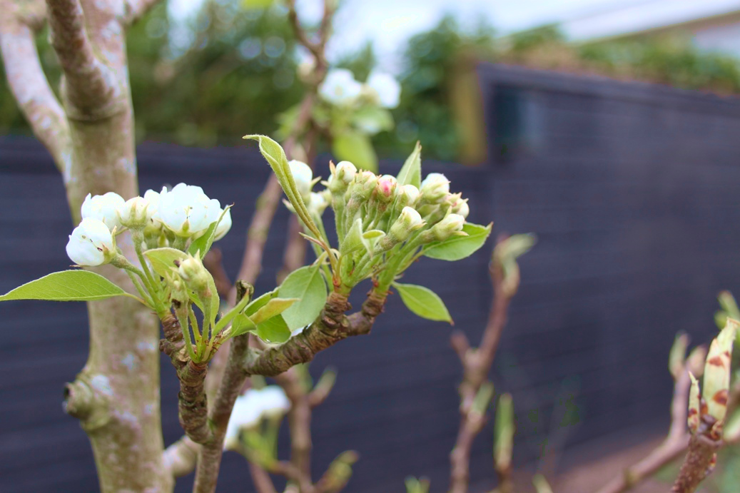 Dat genieten komt vast wel goed. Want hoewel de tuin vrij letterlijk bijna helemaal op de schop ging, is het nu in april al een aantrekkelijke tuin met een bloeiende perenboom, prachtige witte tulpen en heel veel planten op het punt van ontluiken. De vele klimplanten zoals druif, blauwe regen, passievrucht, rozen en clematissen wachten op wat meer warmte om de hoogte in te schieten en de fluweelboom toont zijn zachte knoppen. Coby: “Ik ben heel benieuwd hoe het er straks allemaal uit gaat zien. “Ik kan niet wachten tot alles begint te groeien en in bloei staat!”